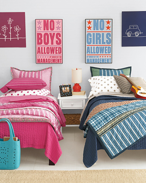But in general terms, society seems to be accepting the fact that less money means priorities are shifting – including the need for every kid to have their own room. And the majority of the population doesn’t fall under the organizations I listed above. It’s a different world these days. Because of the economy, the term “boomerang families” has become a common knowledge word. There are families living on tight budgets, one-income families, families with kids who are helping out a whole lot more, and families moving into tighter quarters to make ends meet. That means that a brother and sister might be forced to share a room long past the time they really want to, or what society would have once deemed unacceptable.