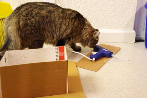 Even Lucci doubted my gluing skills and tried to take over (no curious kitties were burned by hot glue guns in the Mission making process, nor did they come away with paws that stuck together – though they came close).