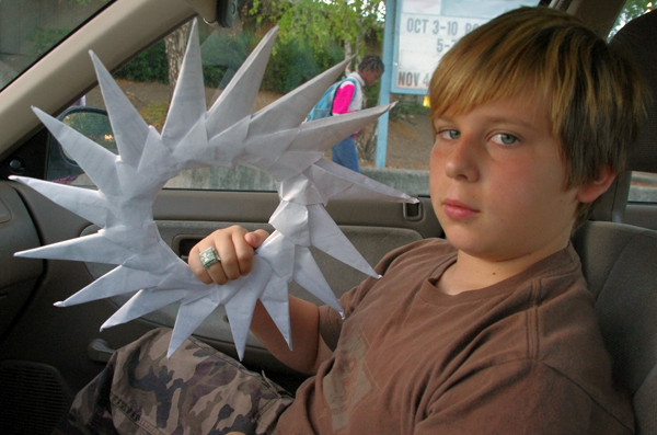 Yesterday he created a 16-point ninja star to join the hundreds of ninja stars he’s already created. Oh, and did you notice the bling he made too?