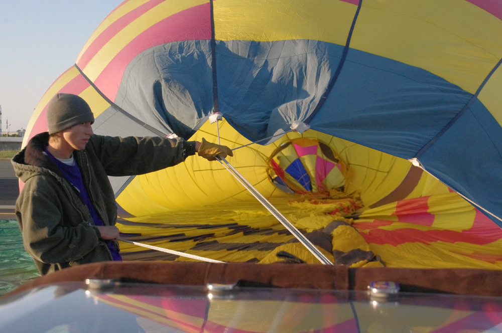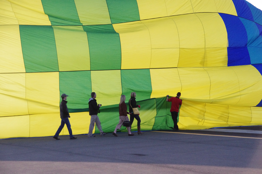 An abandoned airstrip in southwest Santa Rosa is the end of the journey. On this trip, Pilot Kijak lowered the balloon expertly, but got caught in what’s called a “box wind”, a current of air that travels in the opposite direction of the air above. As a result, the balloon traveled backwards and away from the airstrip. To compensate, he brought the balloon back up and overshot the strip before lowering the balloon once again. This time the balloon caught hold of the box wind and traveled back to the airstrip where the chase crew was waiting. The landing was wonderfully uneventful, without even the hint of a bump as the crew grabbed hold of the basket and lowered it gently to the ground. They relieved the balloon of all its air before rolling it up and packing the balloon away.