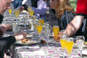 Many of the local balloon companies in Sonoma County finish the adventure with a special brunch before sending their guests on their way. Up & Away serves a delicious homemade brunch made by Mike Kijak’s wife, Patty, of quiche, coffeecake, chocolate covered strawberries, and more, offered alongside mango mimosas on the beautiful grounds of Kendall Jackson Vineyards. The workers shed their tough exteriors to join in on the fun with guests and their coworkers. Many of the staff began working with Up & Away because a family member invited them.