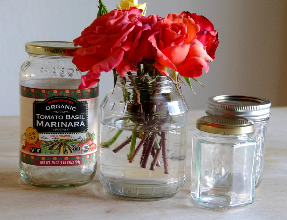 I’ve been playing around with ideas for table settings and table arrangements for the wedding. I’ve gone from idea to idea until I recently settled on using repurposed jars as the vases on the tables. Not only is this option cost efficient, but it is entirely non-wasteful since I’m not buying a ton of vases I won’t need after the wedding. But jars? I use them for everything at home – from leftovers to vases to just storing things in an easy container.