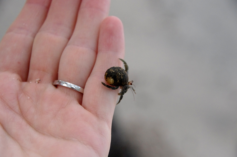 I was mesmerized by the hermit crabs. They’d hide in a flock of seashells when I walked close, appearing to be nothing but lifeless shells. But as soon as they thought the coast was clear, the sand became a moving carpet of hermit crabs, hundreds of them traveling to an unknown destination. They were in various shapes and sizes, harboring colorful shells as their homes, tumbling across each other in a race to the finish.