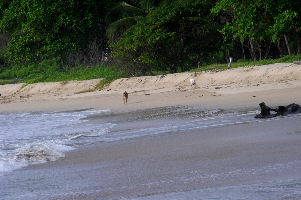 When we got near our towels, the brown one raced ahead and sniffed at both of them. He found mine and then lifted his leg to pee on my camera case. To me, it felt like he was sending us a message that this was his beach and not ours, that we didn’t belong there. It wasn’t until later that it occurred to me that he might actually have peed on my case as a way of holding onto me as his human. It was beginning to be apparent that these dogs were homeless and probably starving, hoping to find a home or at least a plate of food (we later learned that all dogs have much more freedom than dogs in the US, roaming free as if they’re wild.  These dogs probably did have an owner but were just enjoying a day on the beach). The urgency in them was becoming a sign that it was time to leave.