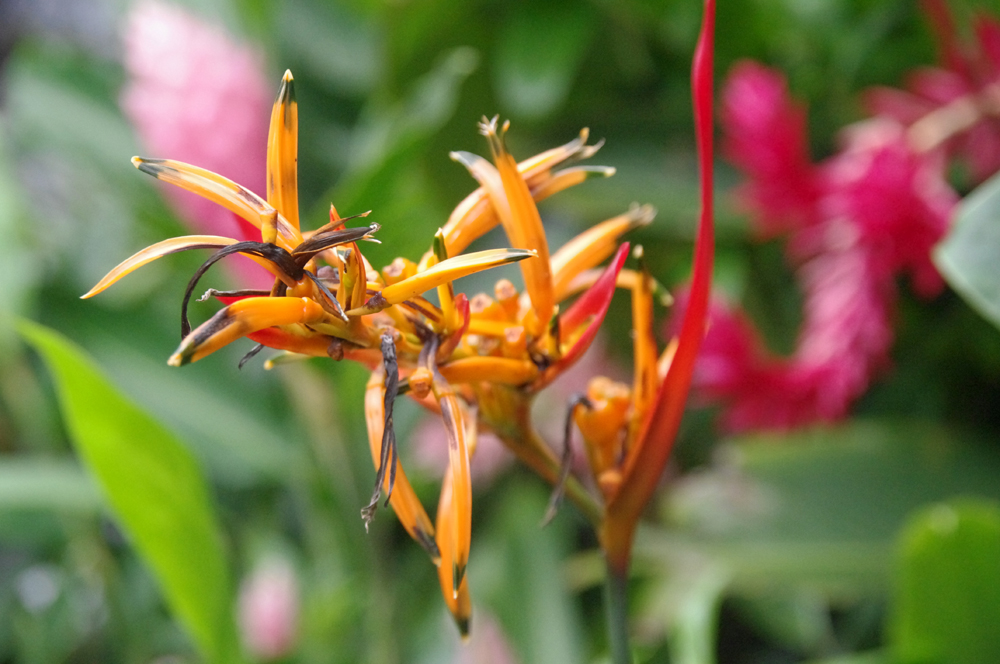 We got to the Tabacon Spa, and were mesmerized by the many pools. A maze of a walkway led us around secret nooks where different pools lay with various attributes. Some were shallow and warm, some hot with waterfalls, some cooler to take a break from the heat. There were so many it was possible to find private moments in each to steal a kiss or just enjoy the solitude. And all around us was the rain forest, tropical plants and colorful flowers, scurrying lizards, the calls of wild birds, and the warm, moist air.