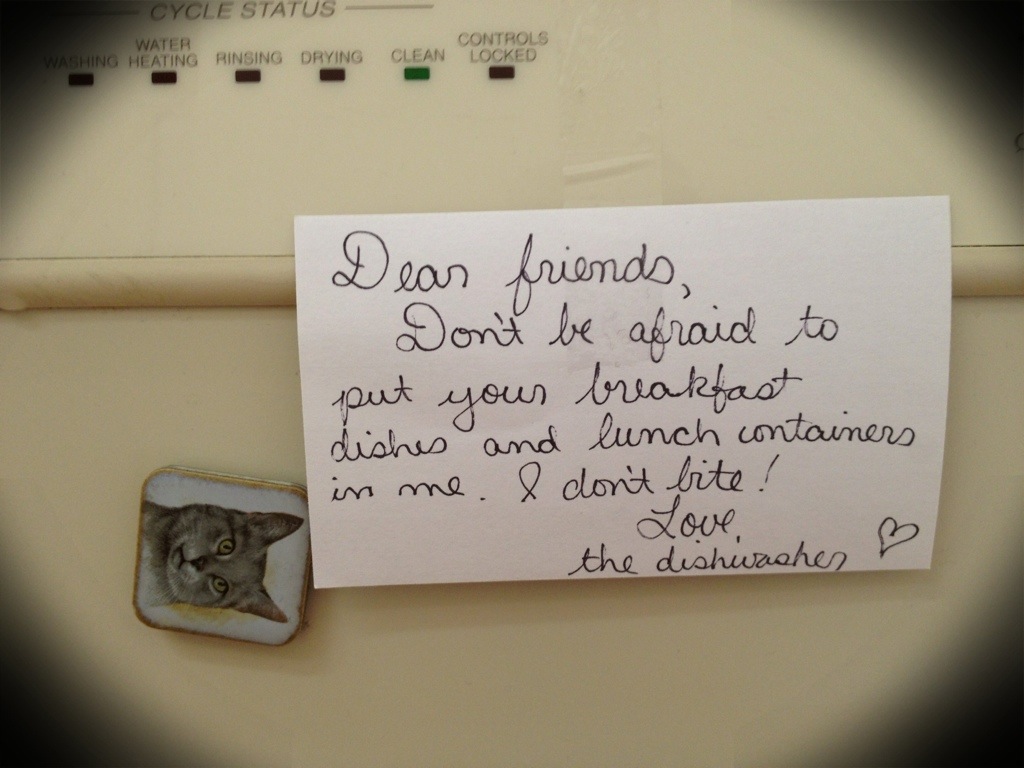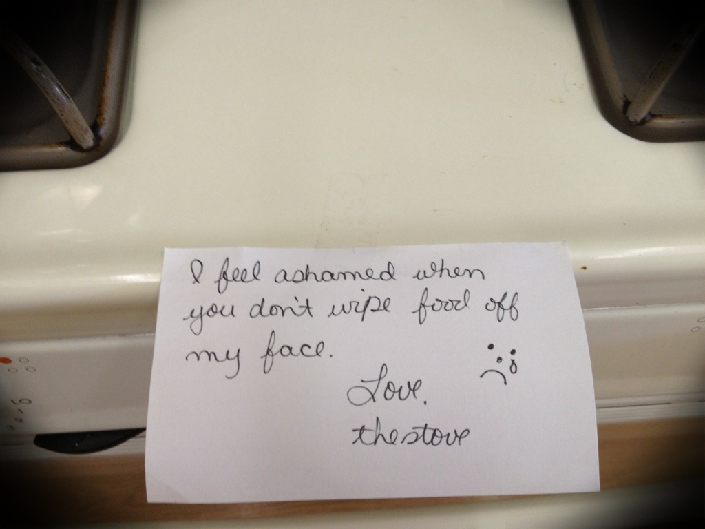 P.S. The teenagers in the house decided humorous notes totally beat out ordering them around. When I came home, the stove was totally clean, and all the dishes were put away.