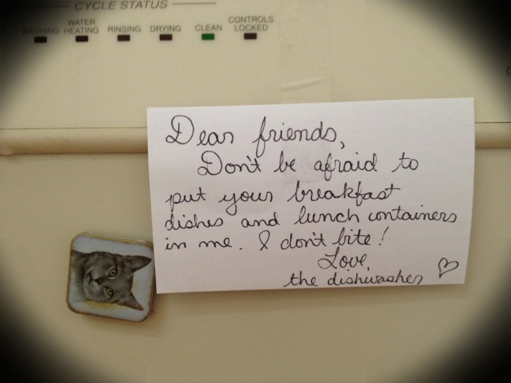 In the morning, I am usually the last one to leave the house. I kind of like it that way, because it gives me a few moments of quiet in an empty house. Of course, it also means that I am the one who is left with a sink full of dishes to fill the dishwasher with, and hungry cats that still need to be fed.